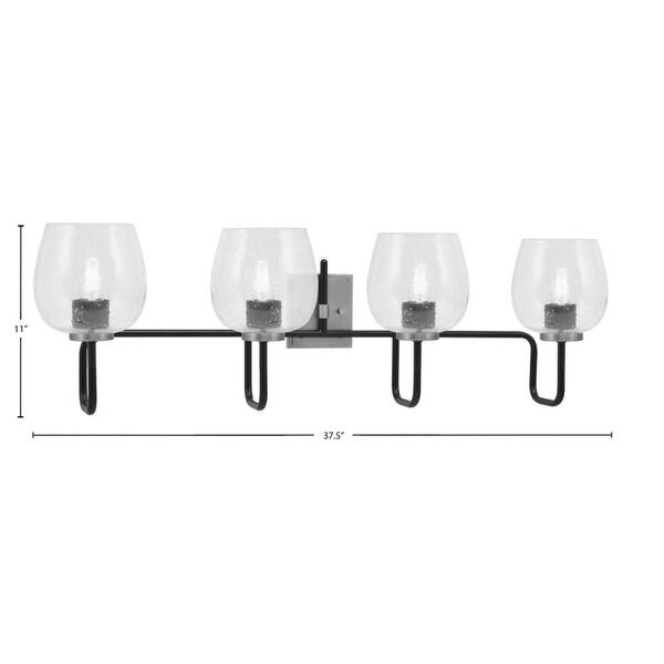 Elonia 16.75 in. 4 Light Matte Black and Graphite Vanity Light with 6 in. Clear Bubble Glass Shades, No bulbs included