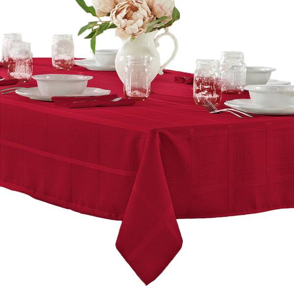 60 in. W x 120 in. L Poinsettia Red Elegance Plaid Damask Fabric Tablecloth