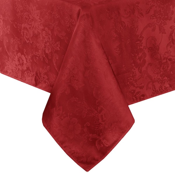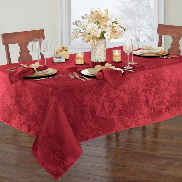 Poinsettia Elegance Jacquard 60 in. W x 144 in. L Red Holiday Print Polyester Tablecloth