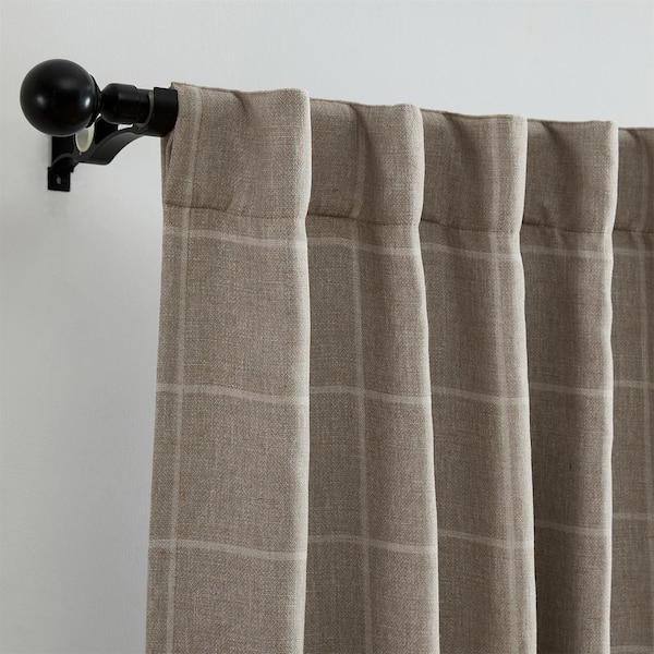 Sawyer Taupe Polyester Windowpane Plaid 52 in. W x 84 in. L Rod Pocket/Back Tab Indoor Blackout Curtain (Single Panel)