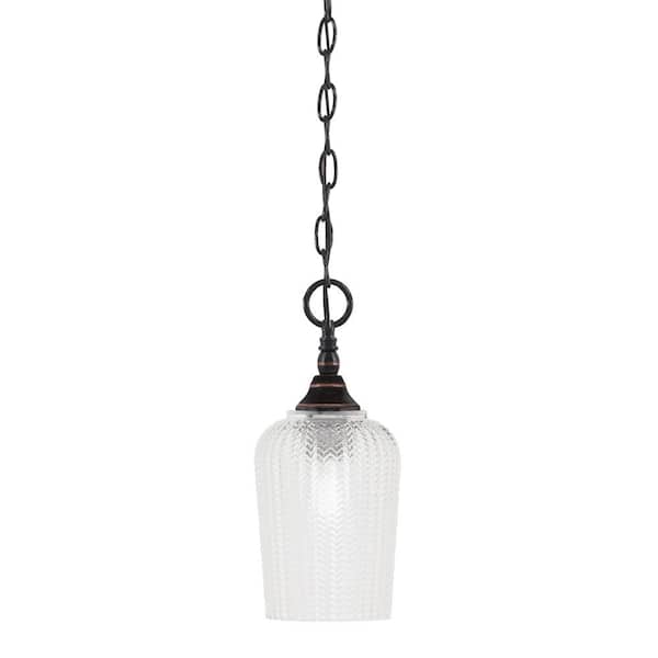 Elva 100-Watt 1-Light Black Copper Shaded Pendant Light with 5 in. Clear Glass Shade, No Bulb Included