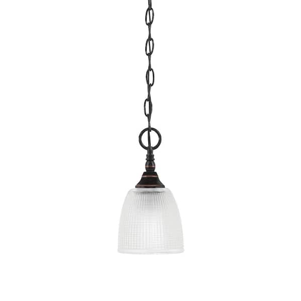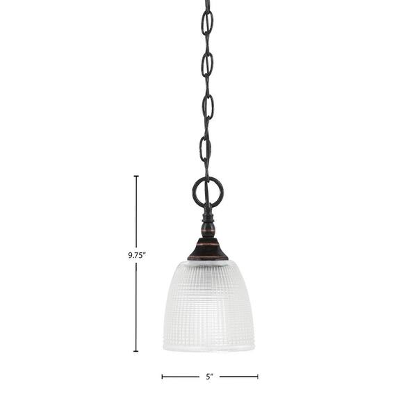 Elva 100-Watt 1-Light Black Copper Shaded Pendant Light with 5 in. Clear Ribbed Glass Shade, No Bulb Included