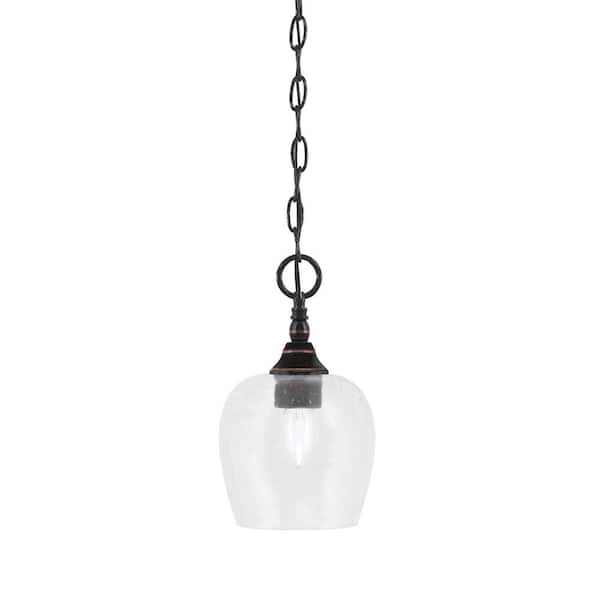 Elva 100-Watt 1-Light Black Copper Shaded Pendant Light with 6 in. Clear Bubble Glass Shade, No Bulb Included