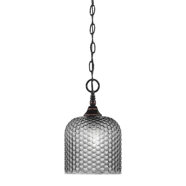 Elva 100-Watt 1-Light Black Copper Shaded Pendant Light with 7" Smoke Glass Shade, No bulb included