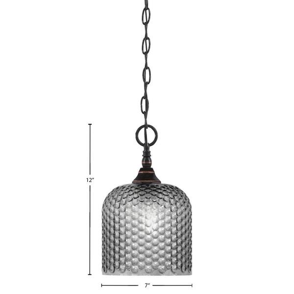 • Sleek black copper finish with a 7 in. Smoke Textured Glass shade