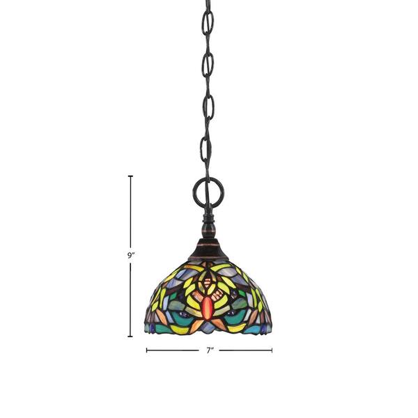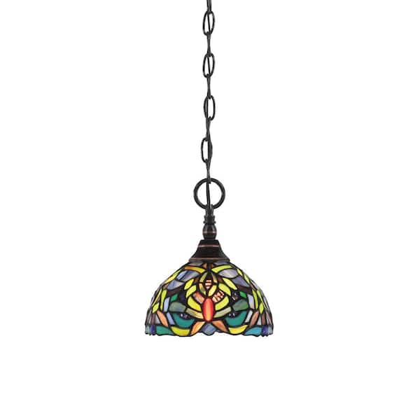 Elva 100-Watt 1-Light Black Copper Shaded Pendant Light with 7 in. Kaleidoscope Art Glass Shade, No Bulb Included