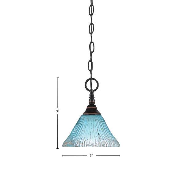 Elva 100-Watt 1-Light Black Copper Shaded Pendant Light with 7 in. Teal Crystal Glass Shade, No bulb included