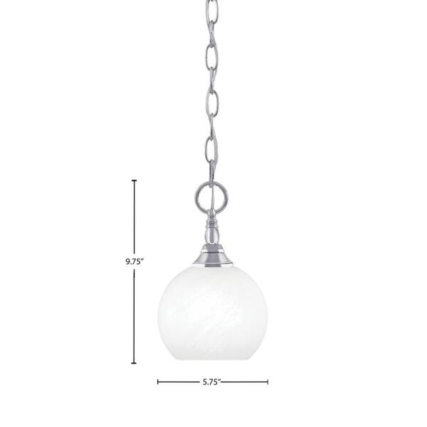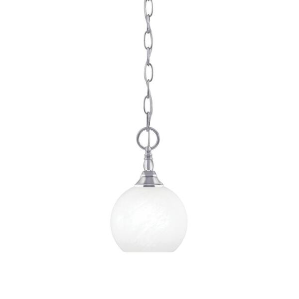 Elva 100-Watt 1-Light Chrome Shaded Pendant Light with 5.75 in. White Marble Glass Shade, No Bulb Included