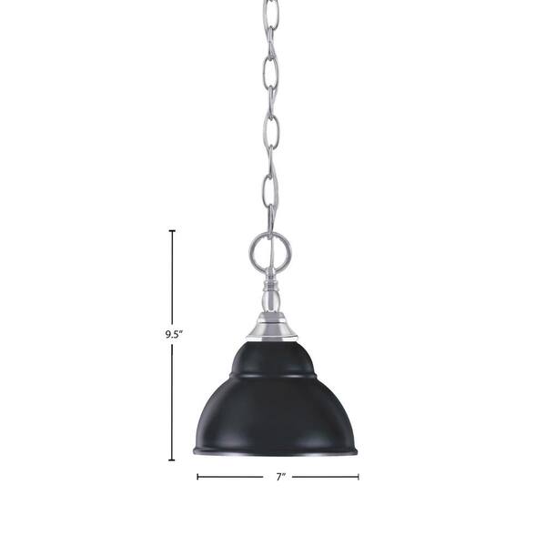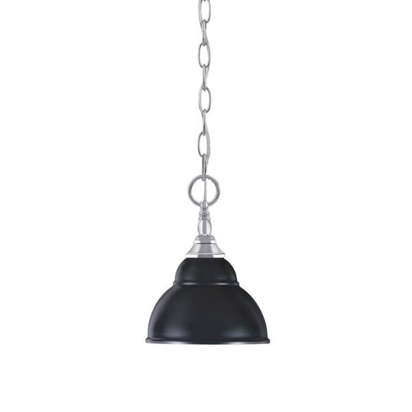 Elva 100-Watt 1-Light Chrome Shaded Pendant Light with 7 in. Matte Black Double Bubble Metal Shade, No Bulb Included