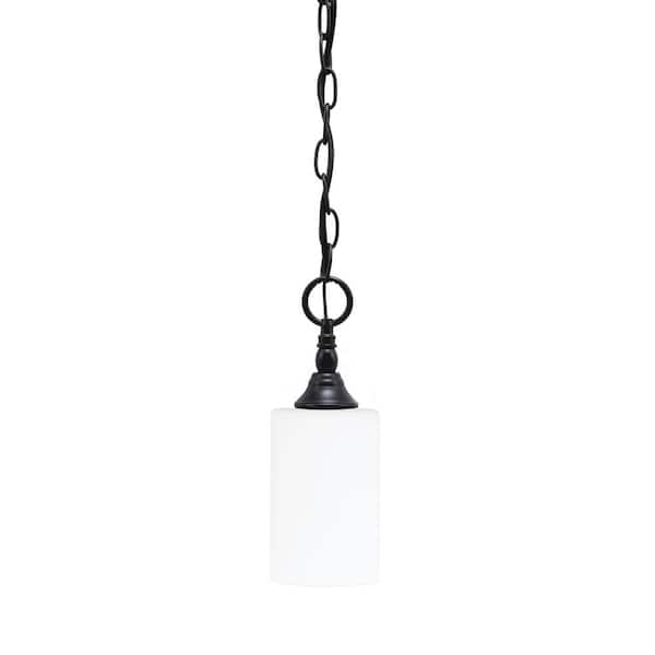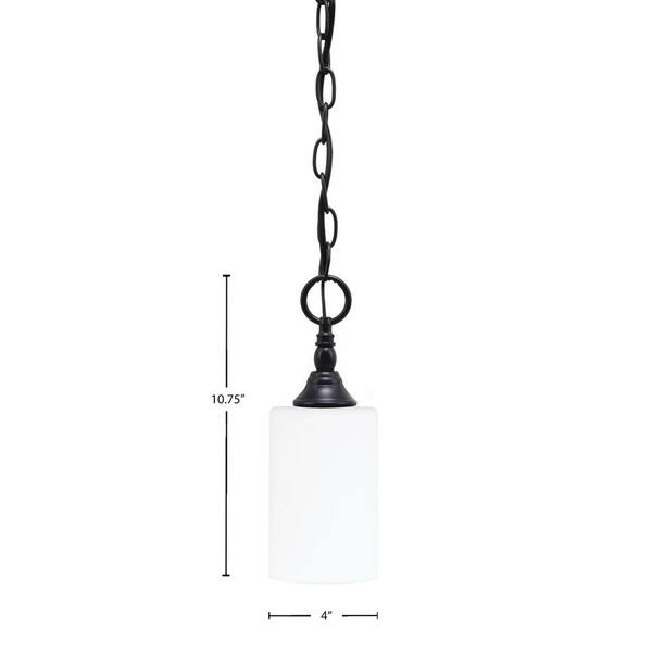 Elva 100-Watt 1-Light Matte Black Shaded Pendant Light with 4 in. White Muslin Glass Shade, No Bulb Included