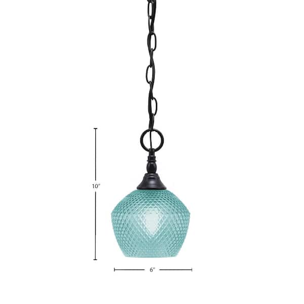 Elva 100-Watt 1-Light Matte Black Shaded Pendant Light with 6 in. Turquoise Textured Glass Shade, No Bulb Included