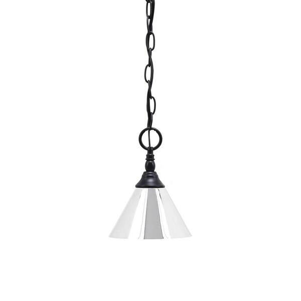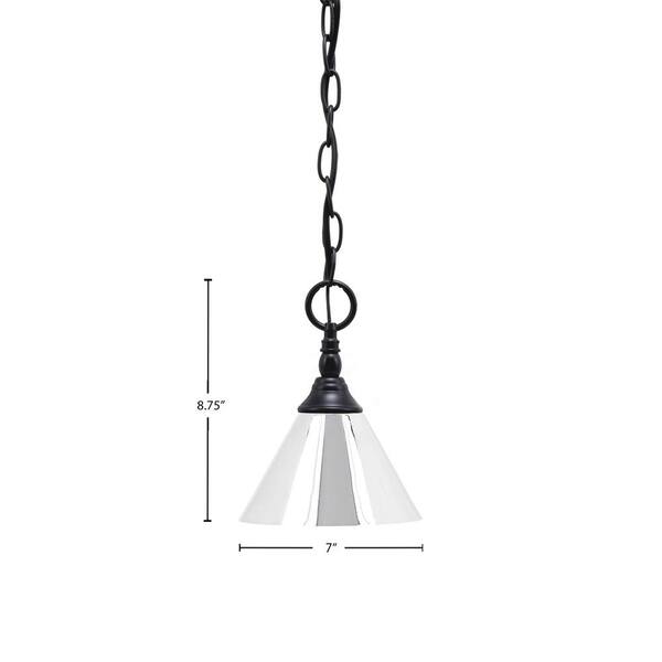 Elva 100-Watt 1-Light Matte Black Shaded Pendant Light with 7 in. Chrome Cone Metal Shade, No Bulb Included