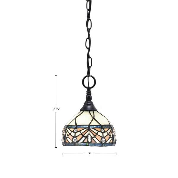 Elva 100-Watt 1-Light Matte Black Shaded Pendant Light with 7 in. Royal Merlot Art Glass Shade, No Bulb Included