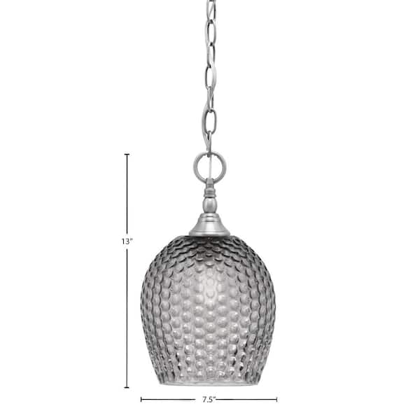 Elva 100-Watt 1-Light Nickel Shaded Pendant Light with 7.5 in. Smoke Textured Glass Shades, No Bulbs Included