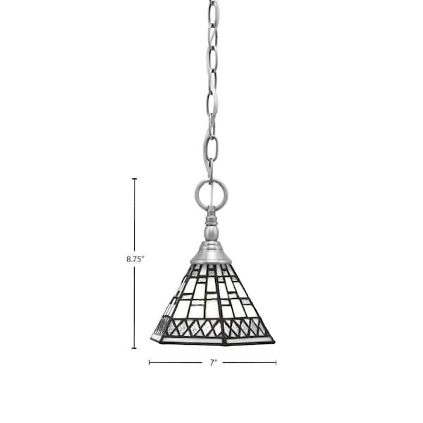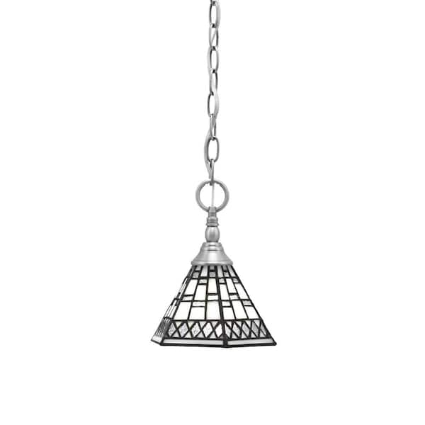 Elva 100-Watt 1-Light Nickel Shaded Pendant Light with 7 in. Pewter Art Glass Shades, No Bulbs Included