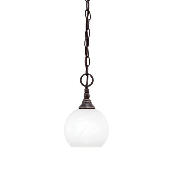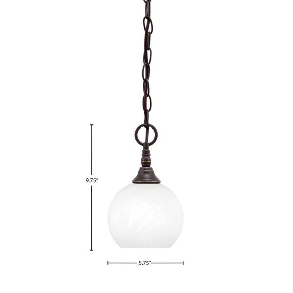 Elva 100-Watt 1_light Dark Granite Shaded Pendant Light with 5.75 in. White Marble glass Shade, No Bulb Included