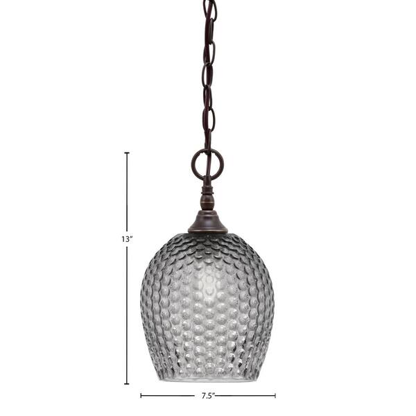 Elva 100-Watt 1_light Dark Granite Shaded Pendant Light with 7.5 in. Smoke Textured glass Shade, No Bulb Included