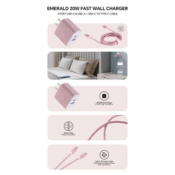 2 Port Wall Adapter + 6FT Type C Cable 20W Fast Charging