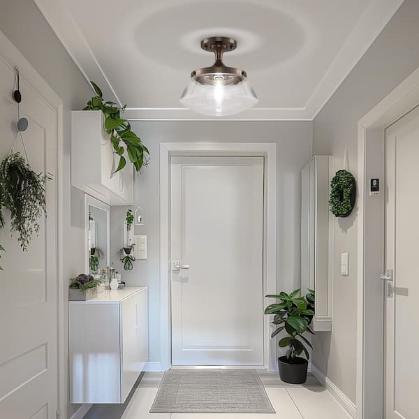 10 in. 1-Light Brushed Nickel Semi-Flush Mount Ceiling Light with Clear Glass Shade for Hallway, Bedroom Decor
