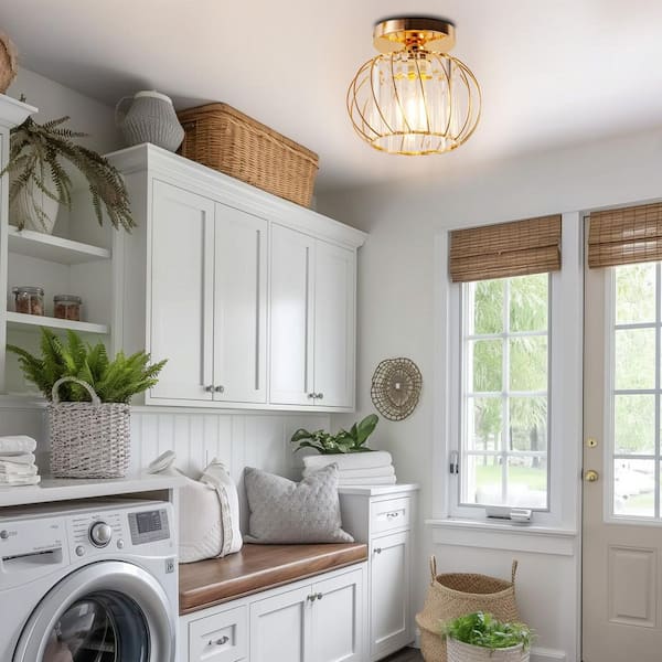 10 in. 1-Light Gold Metal Caged Semi-Flush Mount for Kitchen Bedroom