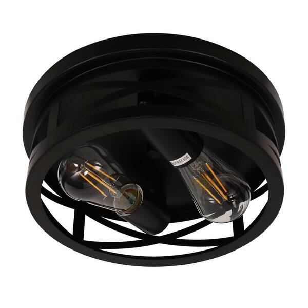 11 in. Black Industrial Metal Frame Flush Mount Ceiling Light with Drum Metal Cage Shade E26 Base (Bulbs Not Included)