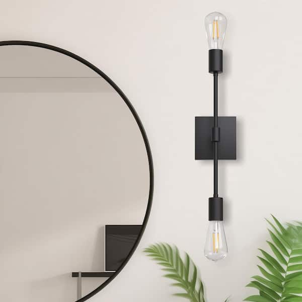 14.5 in. 2-Light Black Iron Vanity Light with Painted Matte for Bathroom