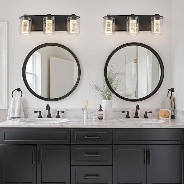 17 in. 3-Light LED for Vanities Black Vanity Light with Crystal Accents Dimmable