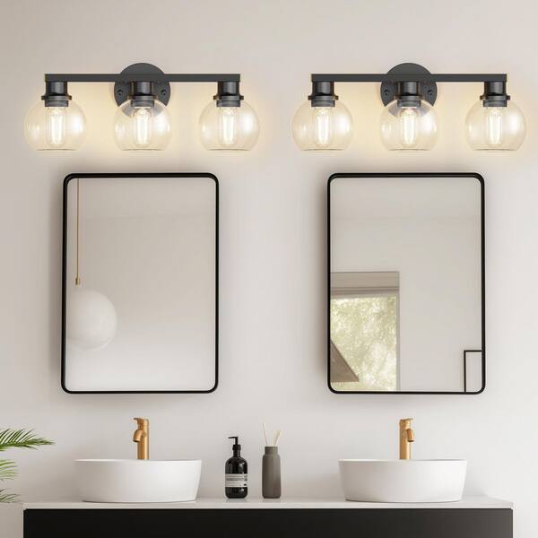 19 in. 3-Light Black Bathroom Vanity Light with Clear Globe Shade, LED Interior Lighting for Powder Room Dressing Room