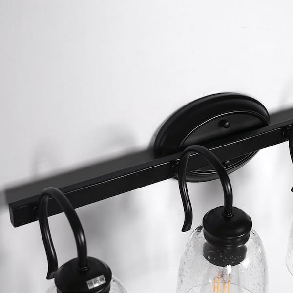 19 in. 3-Light Matte Black Farmhouse Vanity Light with Clear Cone Glass Shade, Dimmable for Bathroom, Vanity, or Mirror