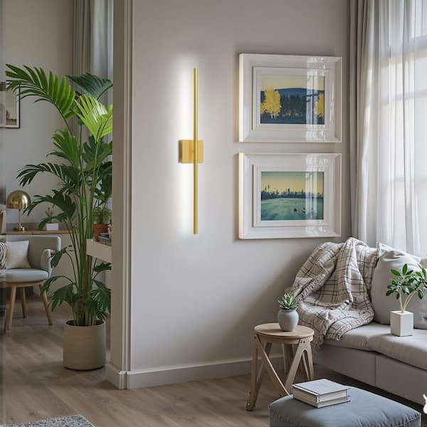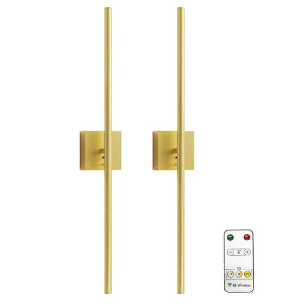 2-Light Gold Dimmable Timing LED Wall Sconce with Remote Control, Wireless Installation (2-Pack)