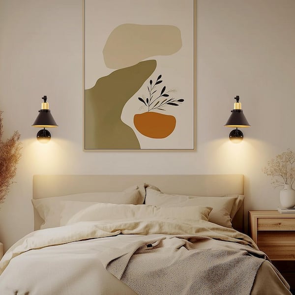 (2-Pack) 7.28 in. 1-Light Black and Gold Wall Sconce with Bell-Shaped Shade and Dual Swing Arms, E26 Base, Dimmable