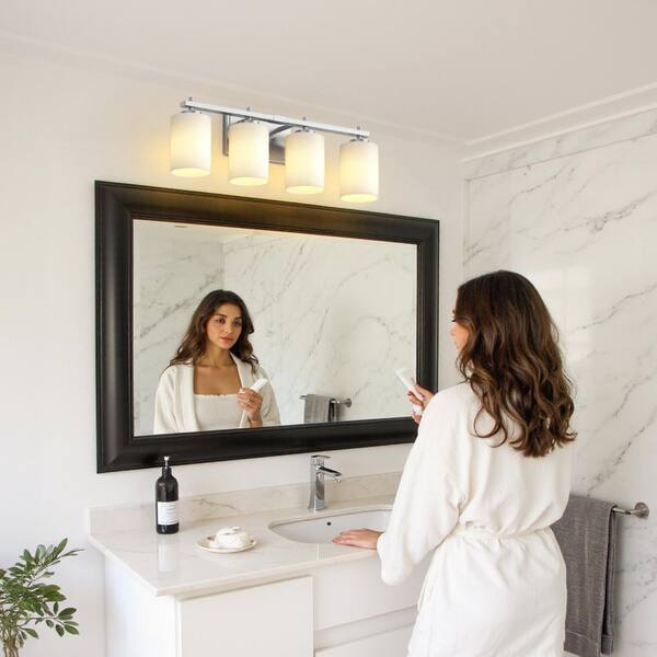 24 in. 4-Light Nickel Bathroom Vanity Light with Cylinder Frosted Glass Shade for Vanity or Dressing Room