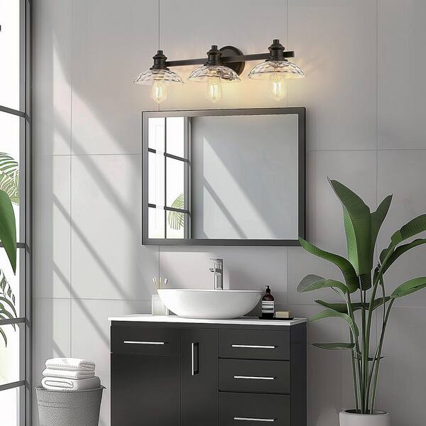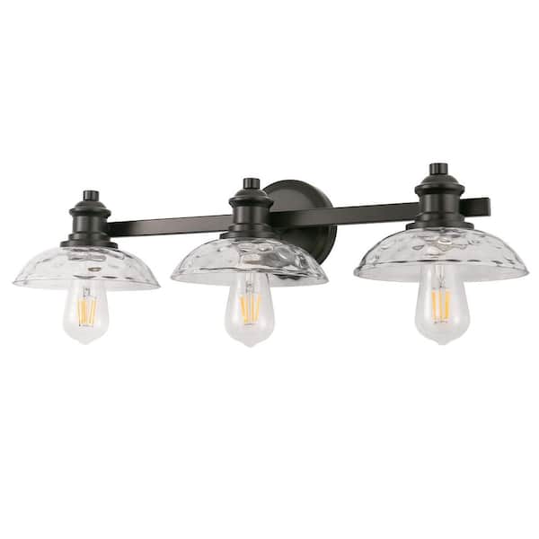 25 in. 3-Light Black Vanity Light with Clear Glass Shades Wall Sconce for Bathroom and Powder Room or Dressing Room