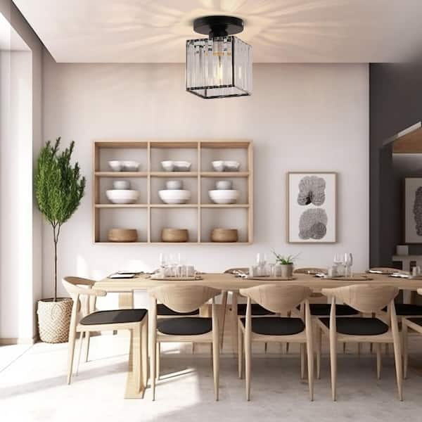 5.5 in. 1 Light Black Square Crystal Semi Flush Mount with Crystal Shade for Hallway