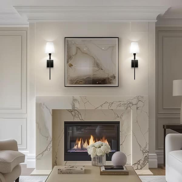 5 in. 1-Light Gold Dimmable Wall Sconces with Fabric Shades for Living Room, Foyer, or Hallway