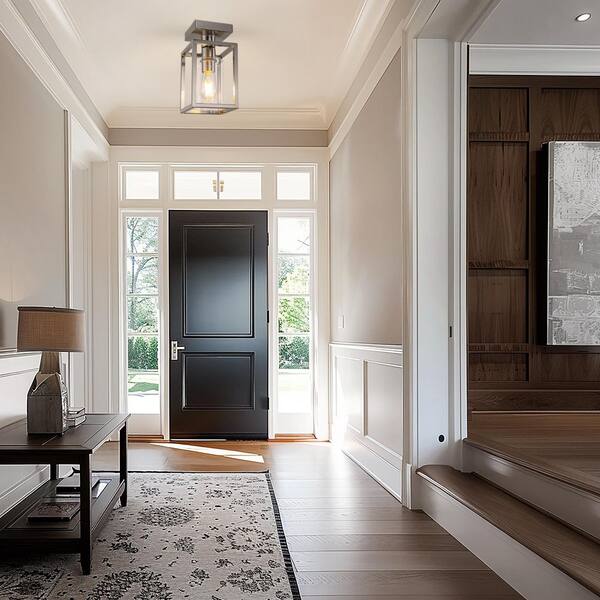 6 in. Nickel 1-Light Cage Semi Flush Mount Ceiling Light with Glass Shade for Living Room Hallway