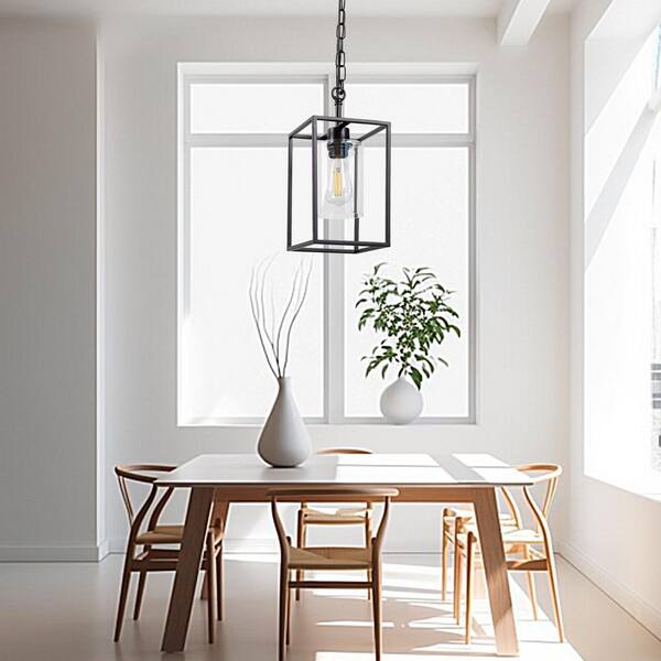 Industrial Black 1-Light Pendant Light with E26 Socket and Clear Glass Shade For Dining Room (No Bulbs Included)