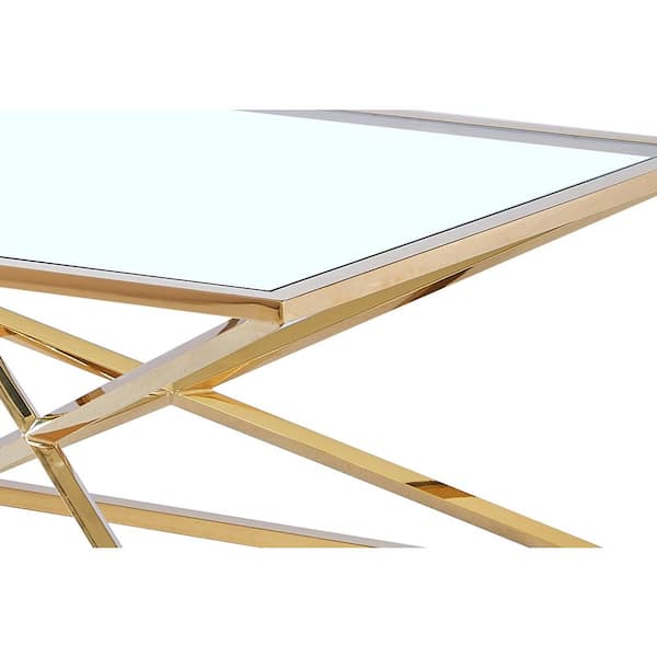 Emerson 47 in. L Gold Rectangle Glass Coffee Table