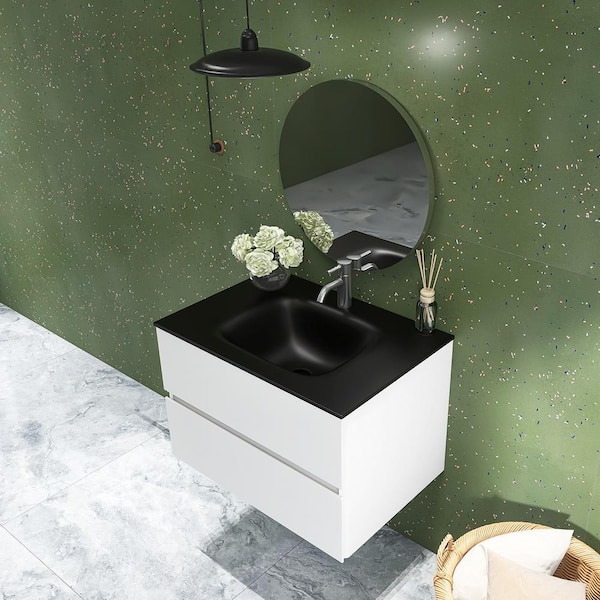Emily 30 in. W x 20 in. D x 20 in. H Single Sink Bath Vanity in White with Black Solid Surface Top