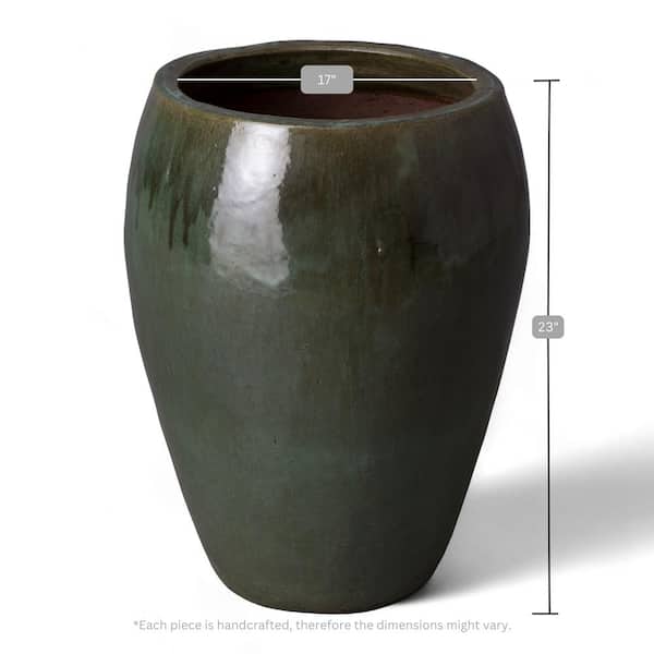 17 in. D x 23 in. H Tea Green Ceramic Round Planter with Drainage Hole
