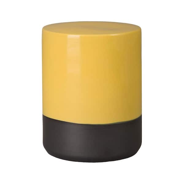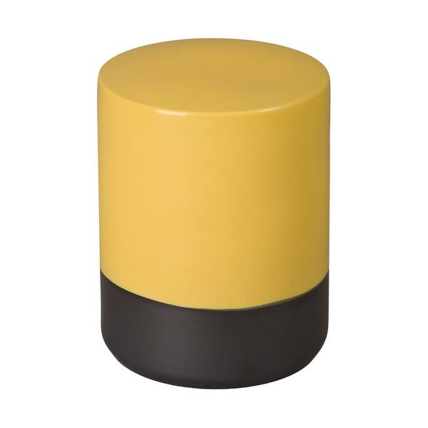 2-Tone 18.5 in. H Semi Glossy Glaze Mustard Yellow Round Ceramic Garden Stool