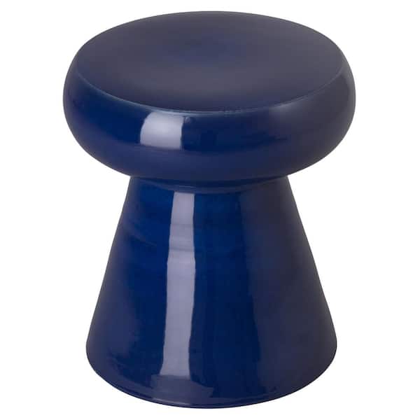Mushroom 18 in. H Glossy Glaze Blue Round Ceramic Garden Stool