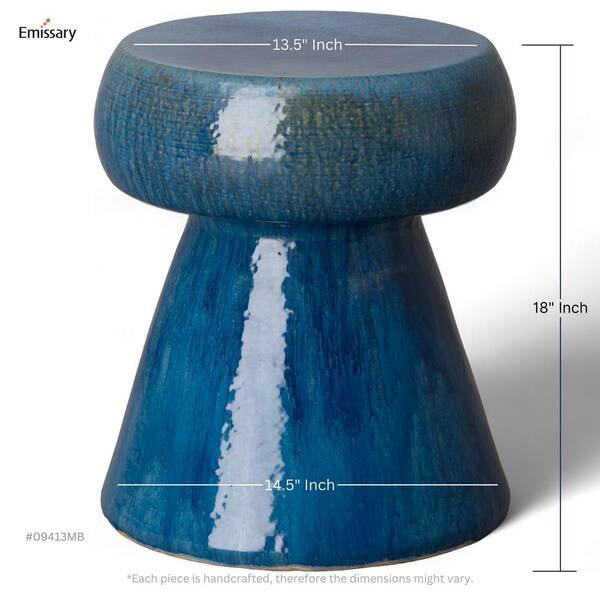 Portobello 18 in. H Marine Blue Round Ceramic Garden Stool