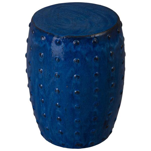 Stud 22 in. Ceramic Garden Stool with a Blue Glaze
