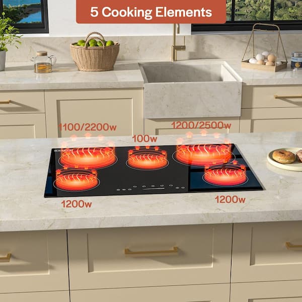 30 in. ETL-Certified 5 EGO Heating Elements Electric Radiant Cooktop 240V 7200W Built-In Stove in Black