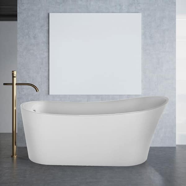 67 in. Acrylic Single Slipper Flatbottom Bathtub Non-Whirlpool Freestanding Soaking Tub in White