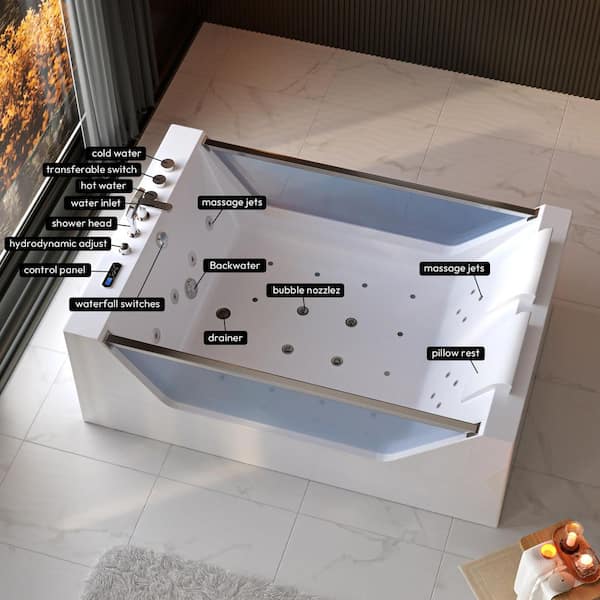 71 in. x 48 in. Whirlpool Air Combination Bathtub Rectangular Lighted Thermostatic Bath Tub with Right Drain in White