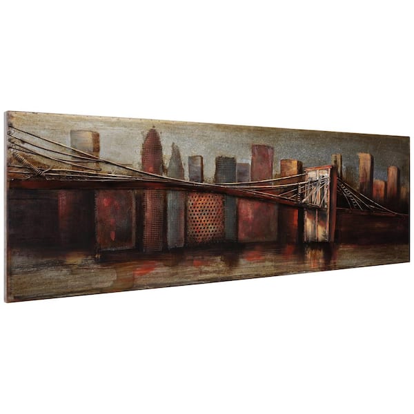 22 in. x 72 in. "Bridge to the City 1" by EAD Art Coop Mixed Media Iron Hand Painted Dimensional Wall Art