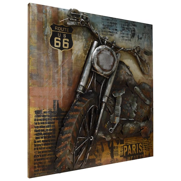 40 in. x 40 in. "Motorcycle 1" Mixed Media Iron Hand Painted Dimensional Wall Art