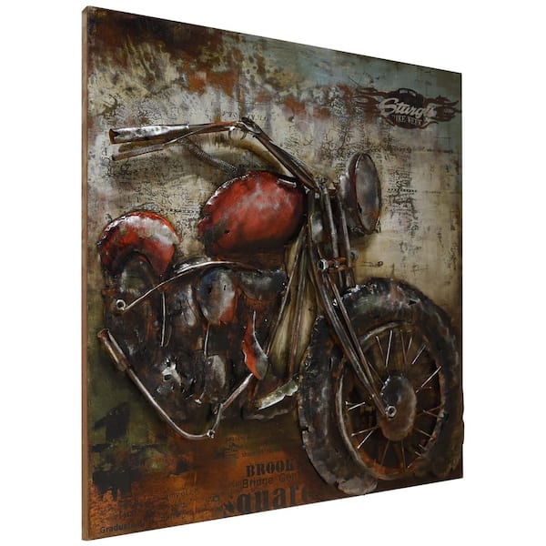 40 in. x 40 in. "Motorcycle 2" Mixed Media Iron Hand Painted Dimensional Wall Art